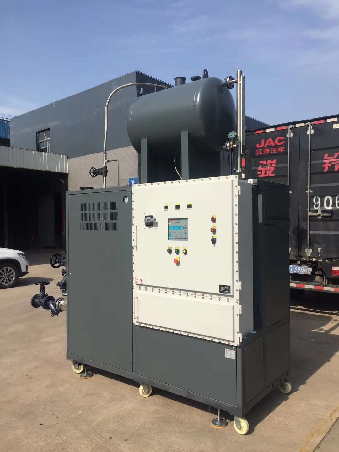 防爆模溫機為整機部件防爆,控制電箱防爆、電氣部件防爆,整機帶電的電氣部件都采用有防爆證書的配件。