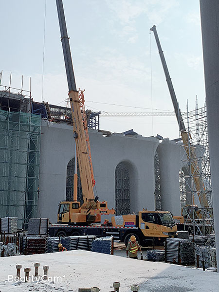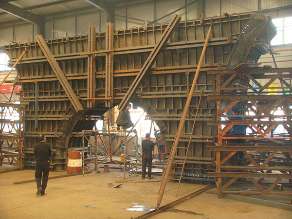 柱較常見的是雙柱形式,另外還有三柱及多柱形式。在鐵路工程中用于道岔梁及公鐵兩用橋設計一般截面較大(長邊尺寸一般大于4m);市政公路工程中的門式墩一般截面在1.5米至2.5米之間;墩身形式有圓端、矩形、多邊形等,鐵路門式墩柱一般采用體內對拉加固,公路門式墩柱一般采用四角斜拉加固,具體形式根據截面大小確定。